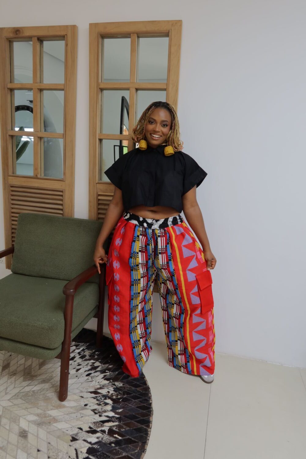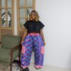 Fabric is made from woven cotton, it’s quite bulky but comfortable to wear, the fit is largely oversized, kindly select your length and waist size from the options