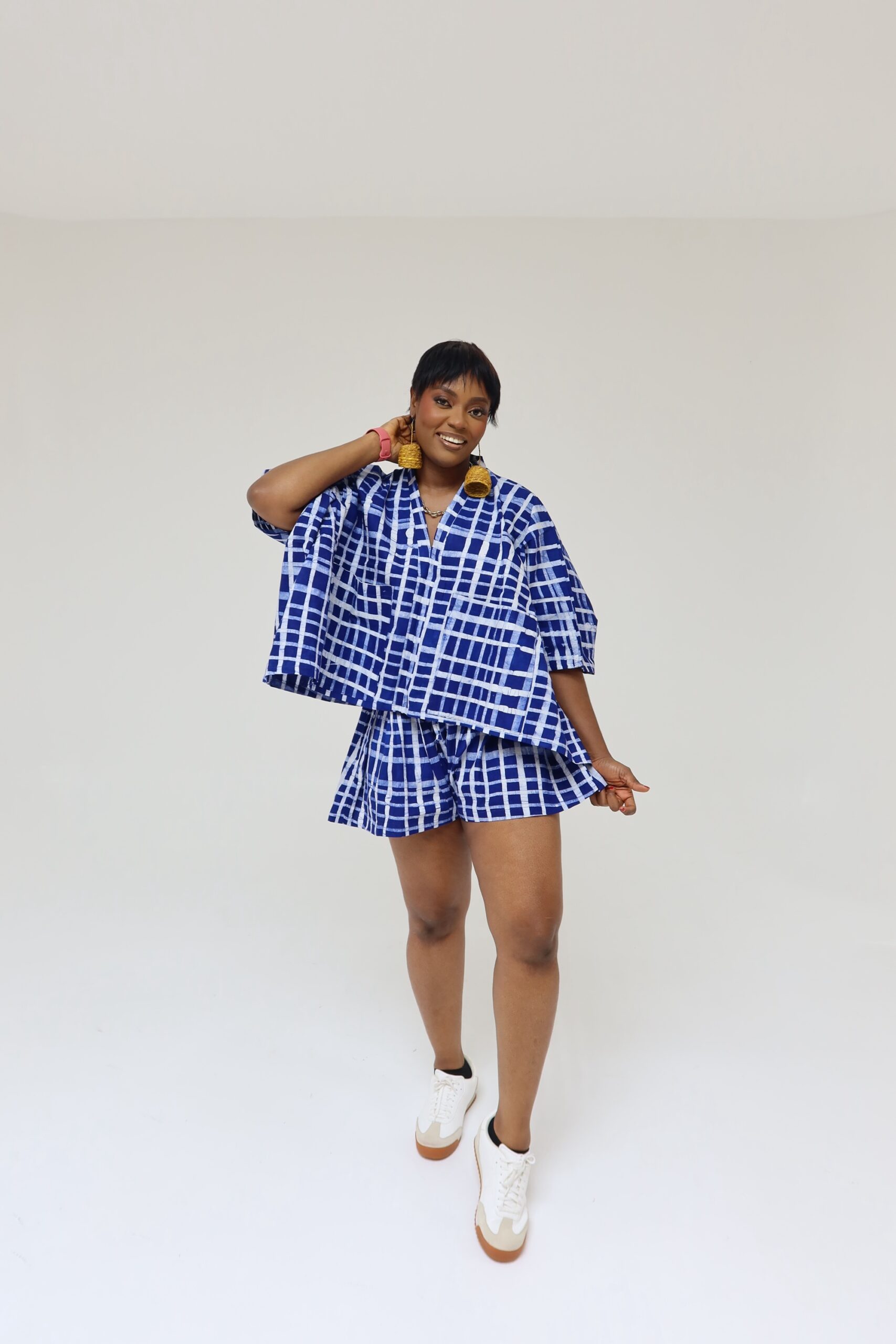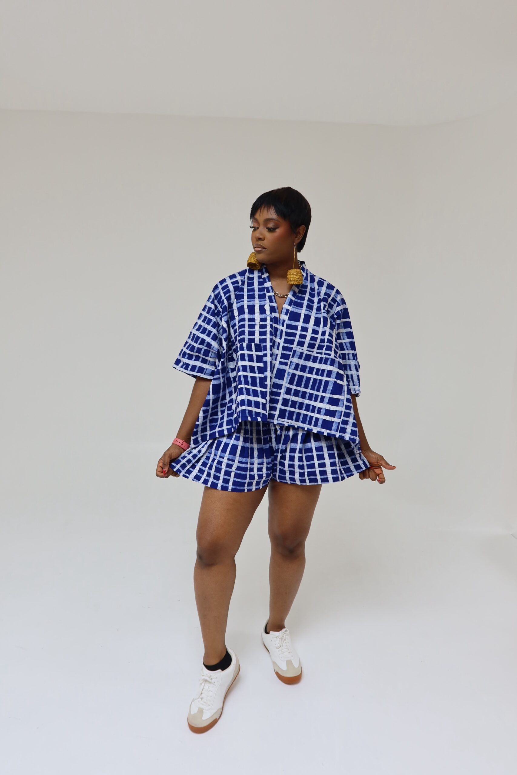 This is a largely oversized outfit, the top is made like an agbada , the shorts are made baggy and oversized with the option of choosing your preferred waist size