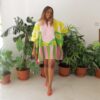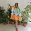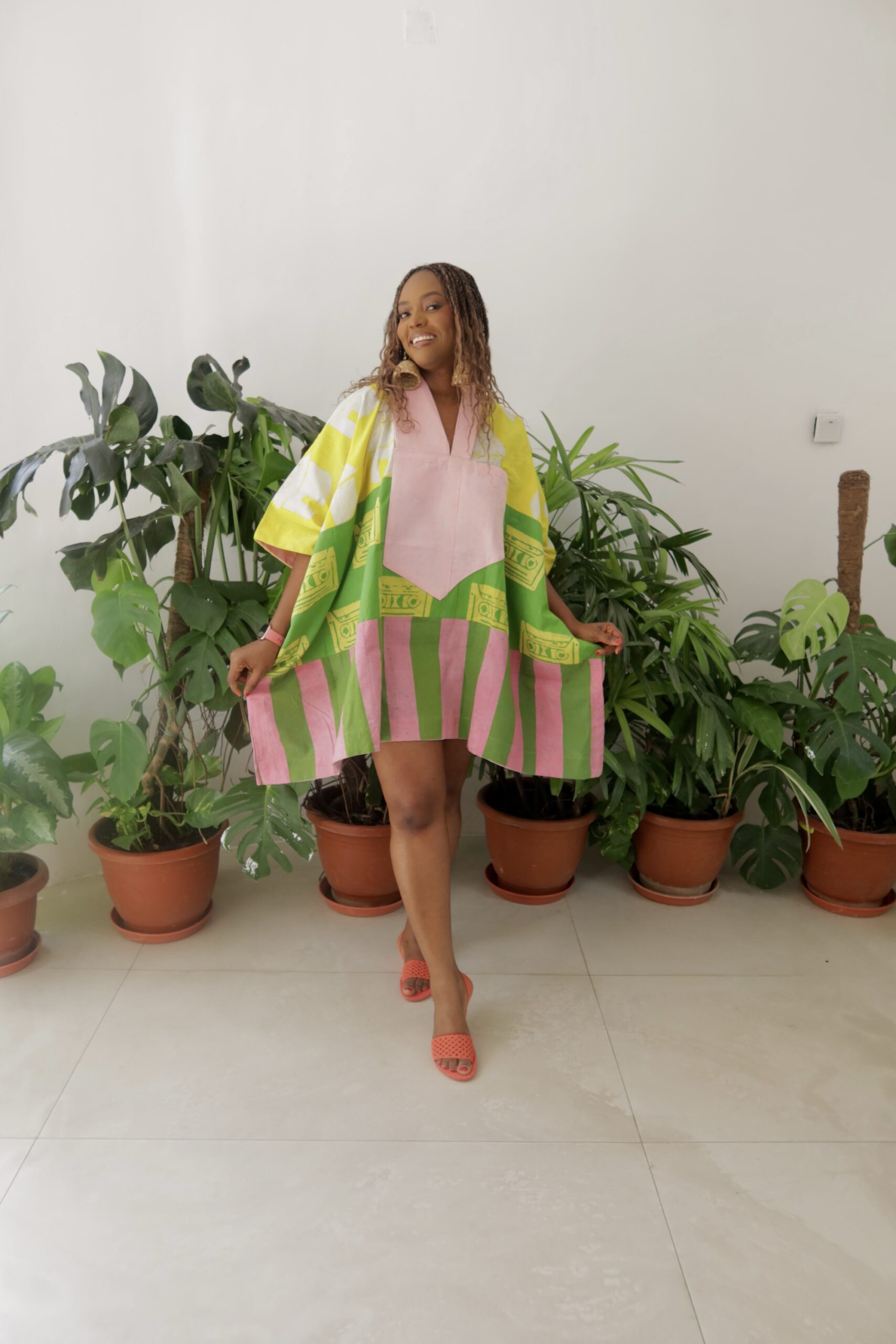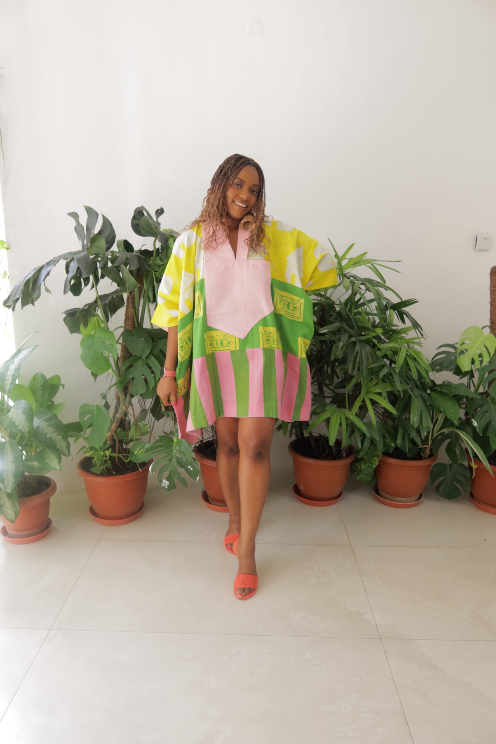 This is a one size fits all agbada short dress, fabric is made of pure cotton Ghana crack, it comes in two lengths, 35 and 36inches, the model is wearing a length 36inches