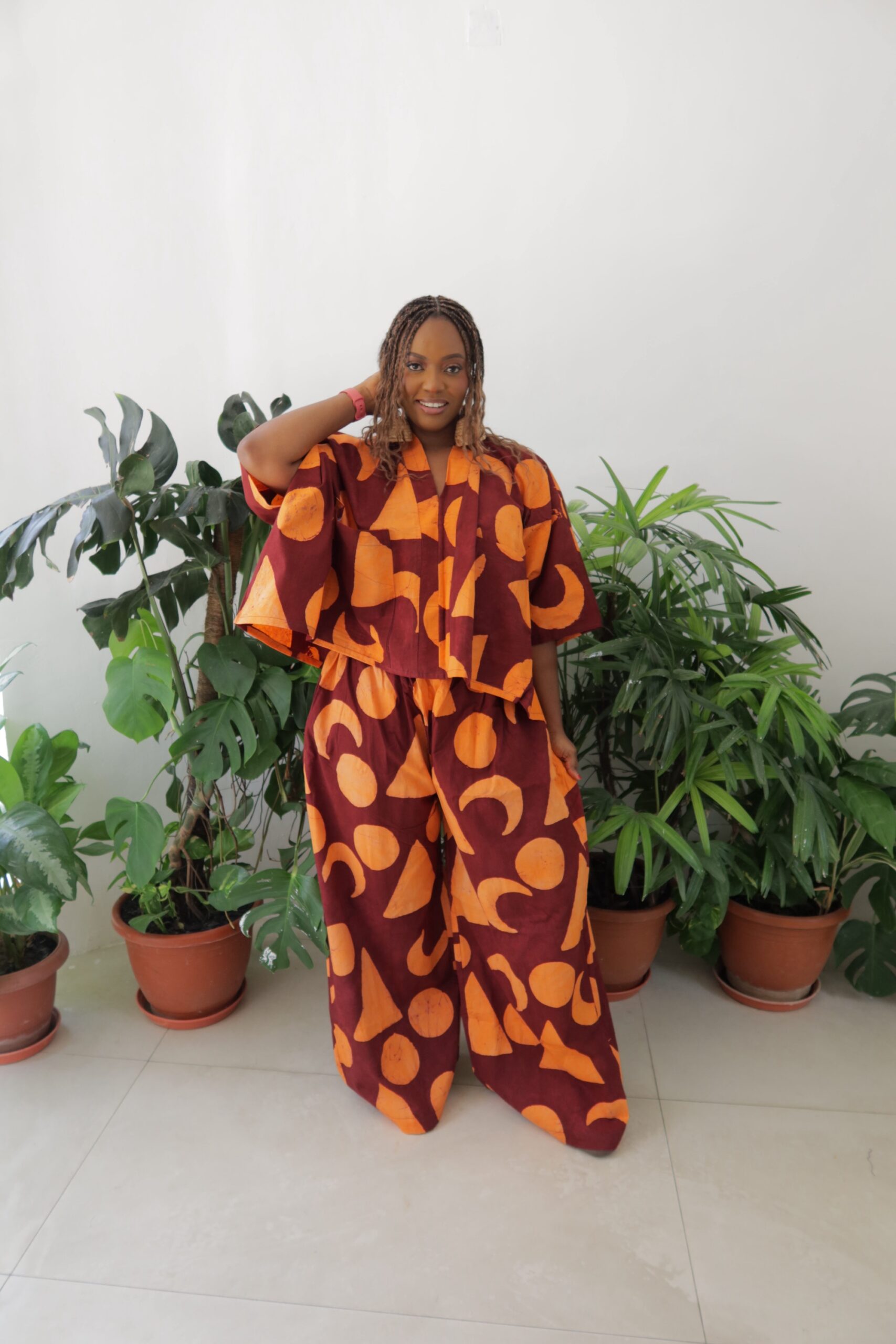 This is a largely oversized outfit, the top is made like an agbada , the pants are made baggy and oversized with the option of choosing your preferred waist and length