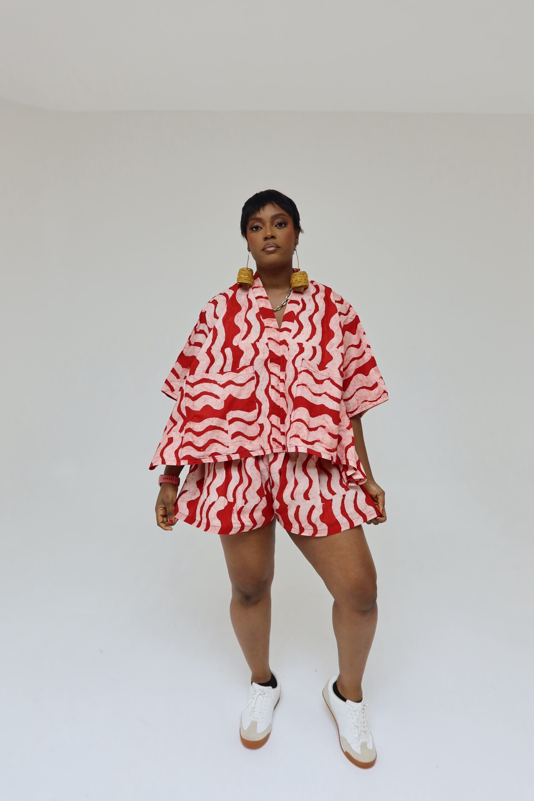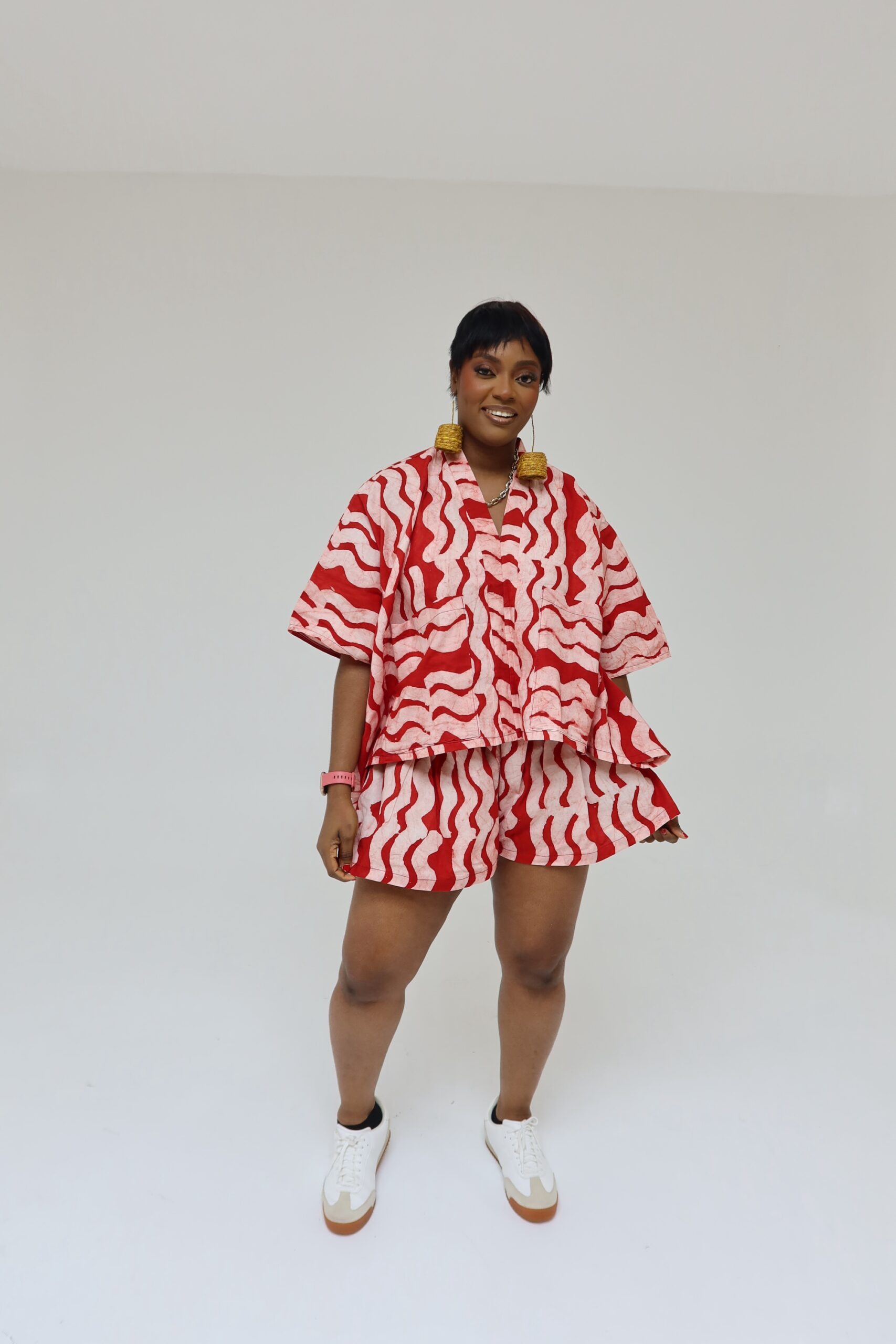 This is a largely oversized outfit, the top is made like an agbada , the shorts are made baggy and oversized with the option of choosing your preferred waist size